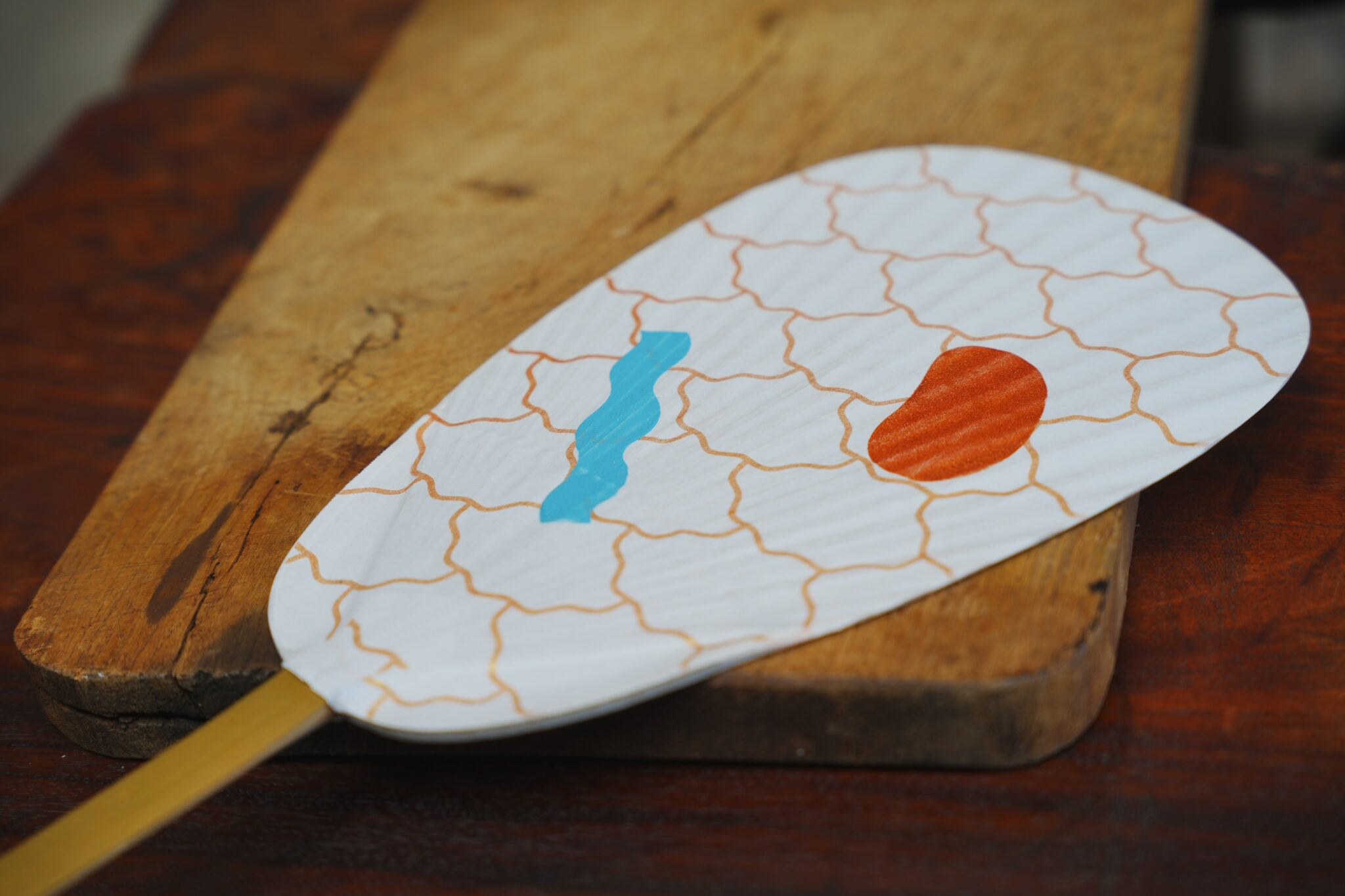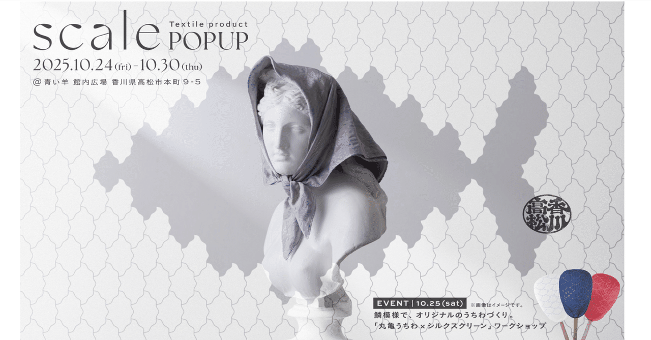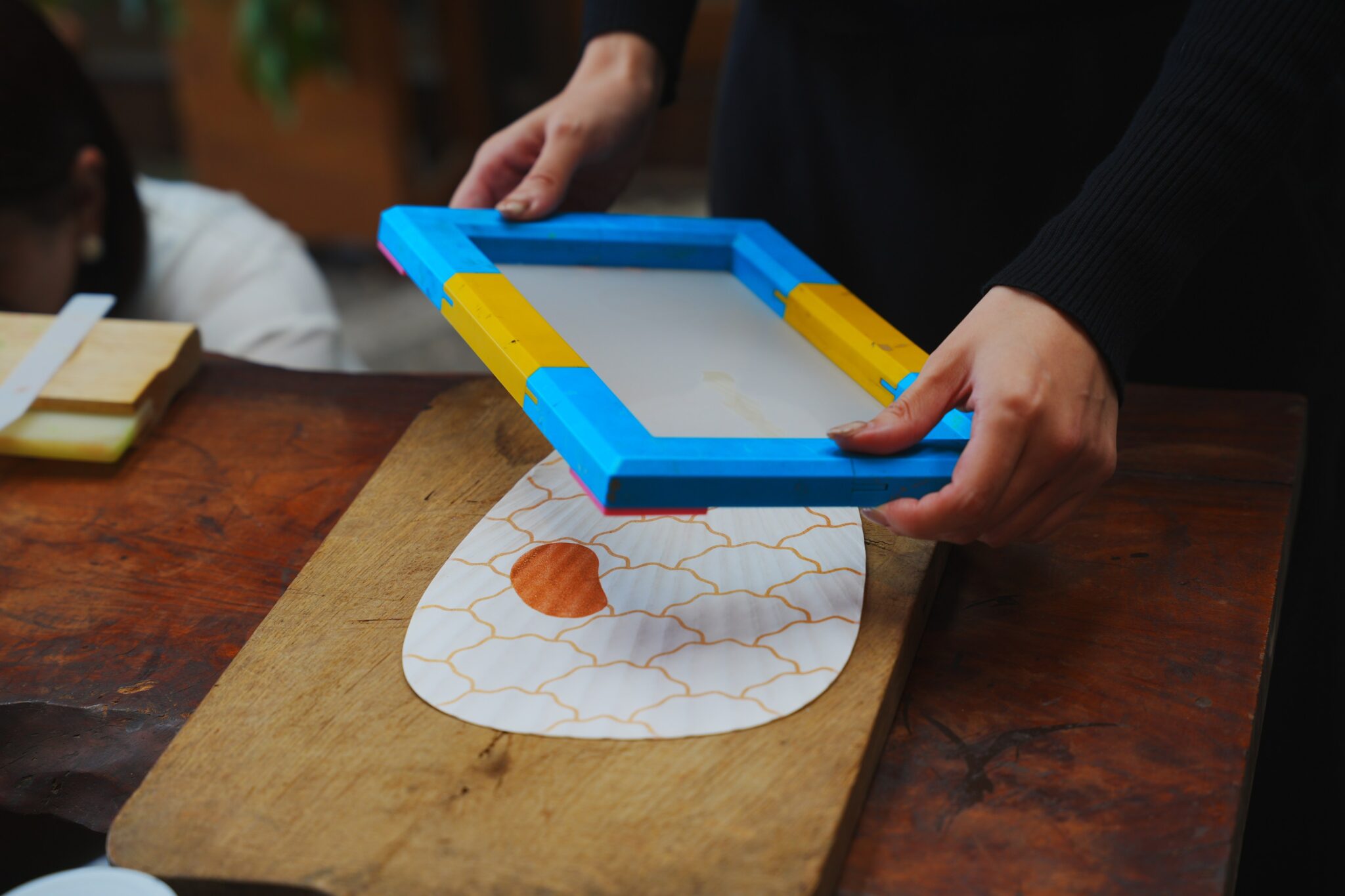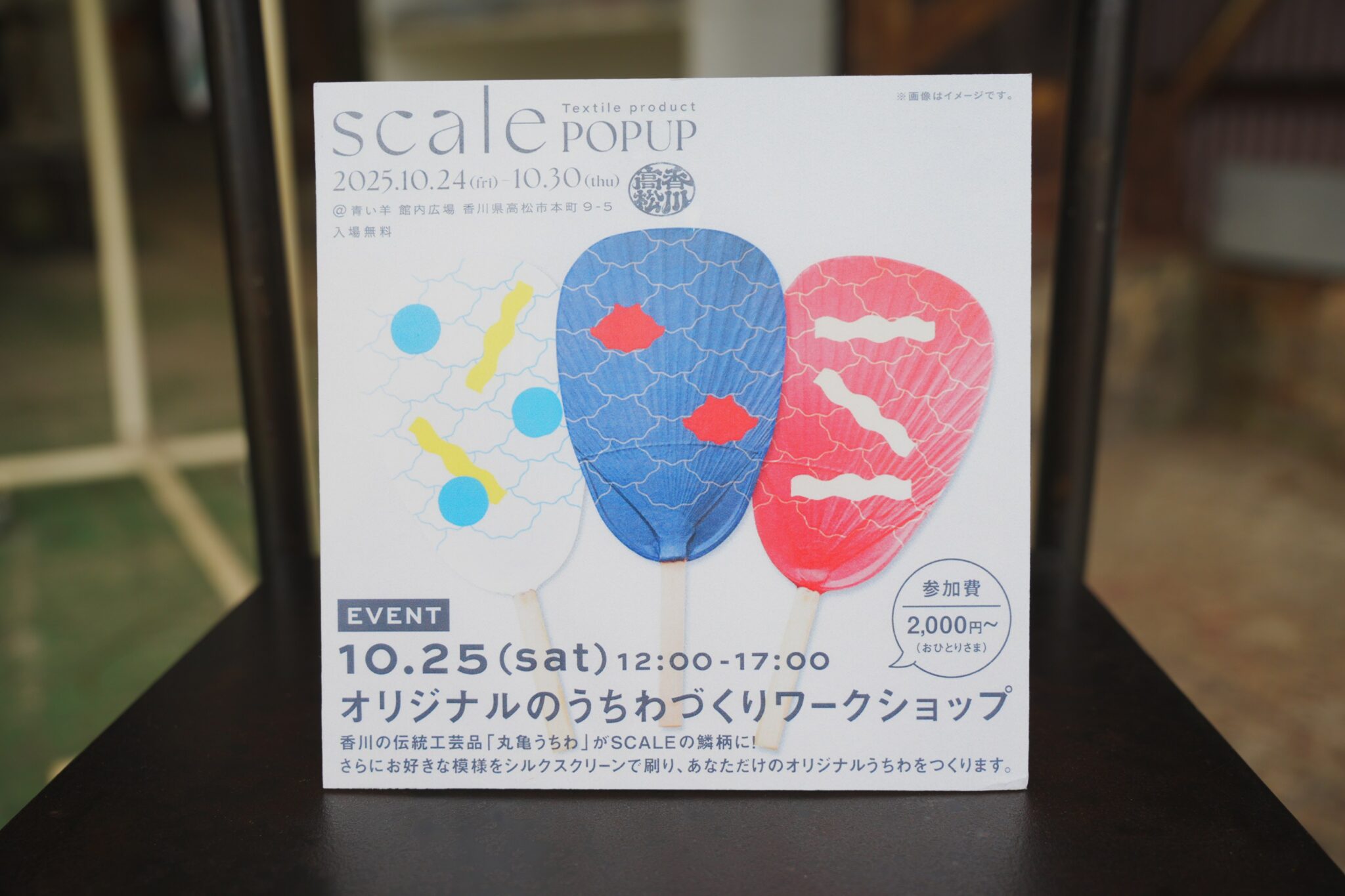 生物の鱗をモチーフにしたテキスタイルと、香川の伝統工芸「丸亀うちわ」を掛け合わせたワークショップ。